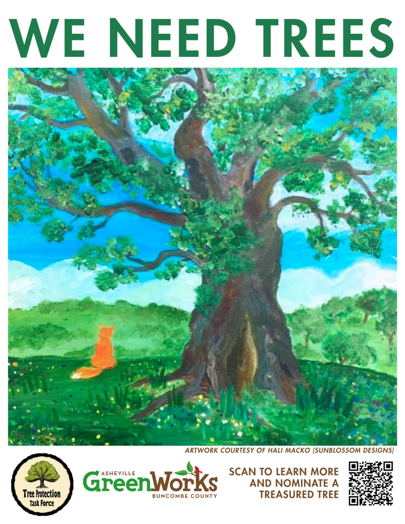 VISION STATEMENT: By 2050, Asheville will have achieved a tree canopy of 50% and growing. Buncombe County’s neighborhoods, forests, parks and streets are full of healthy, mature trees. The Tree Protection Task Force’s work extends to all of Buncombe County for current and future generations.